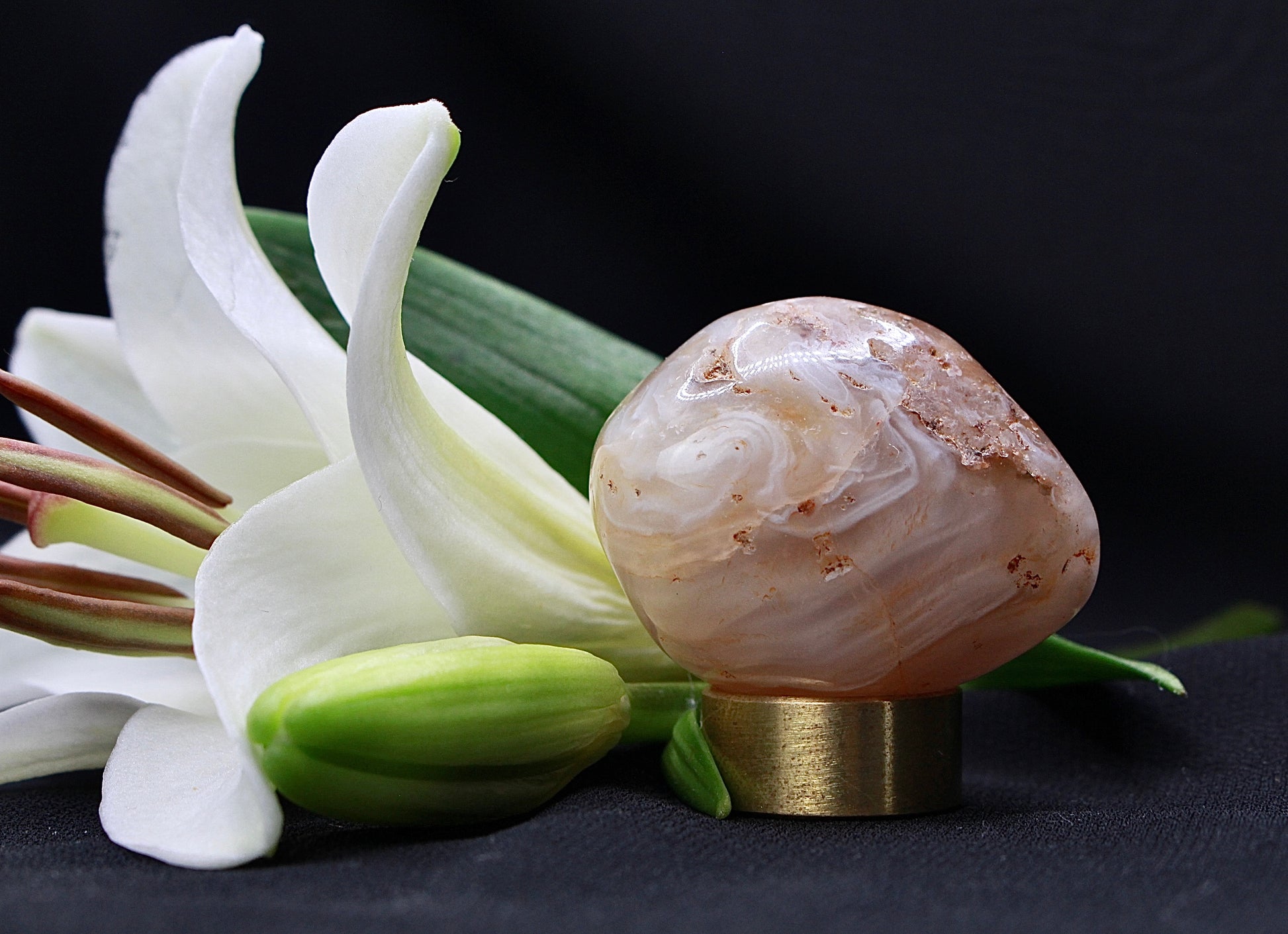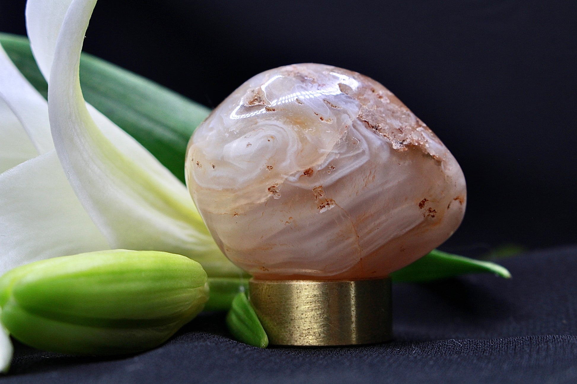 Achat ist ein Chalcedon und gehört damit zu den mikrokristallinen Quarzen Durch wechselnde chemische Bedingungen und Verunreinigungen entstehen schichtweise die bunten Bänder