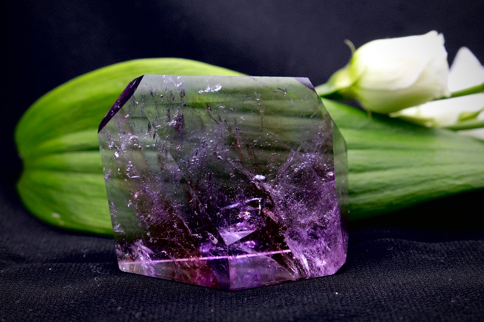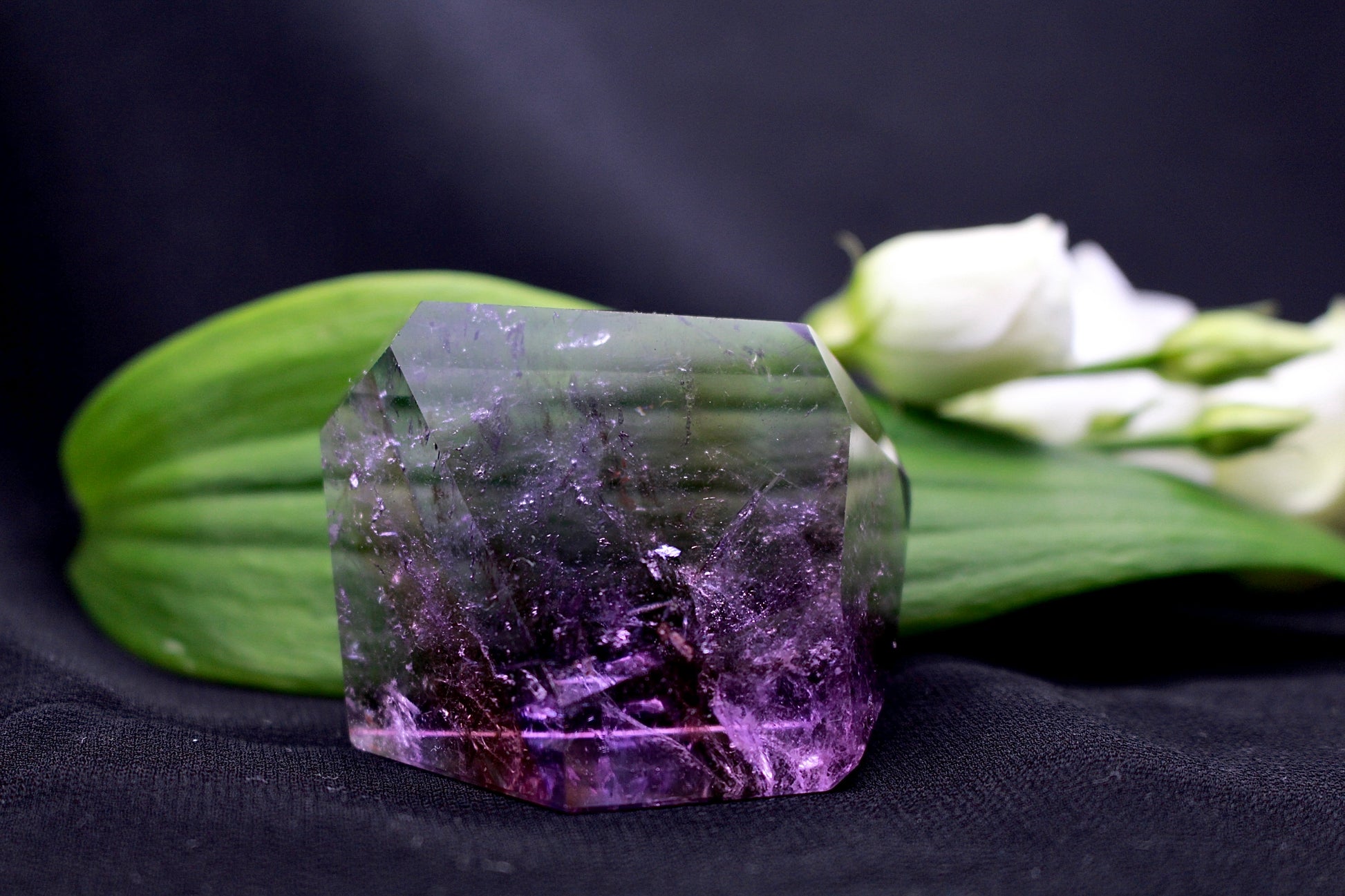 Ametrin ist eine natürliche Fusion von Amethyst und Citrin. Temperaturunterschiede beeinflussen die Oxidationsstufe und Anordnung der Eisenionen. Nur wenn während der Kristallbildung Temperaturunterschiede im Kristall auftreten, entstehen beide Farben gleichzeitig.