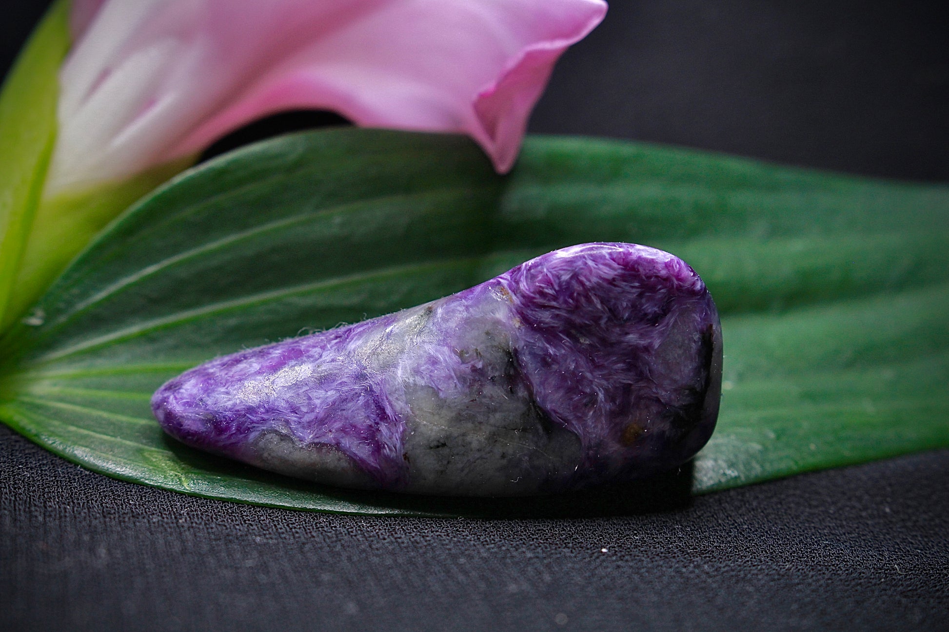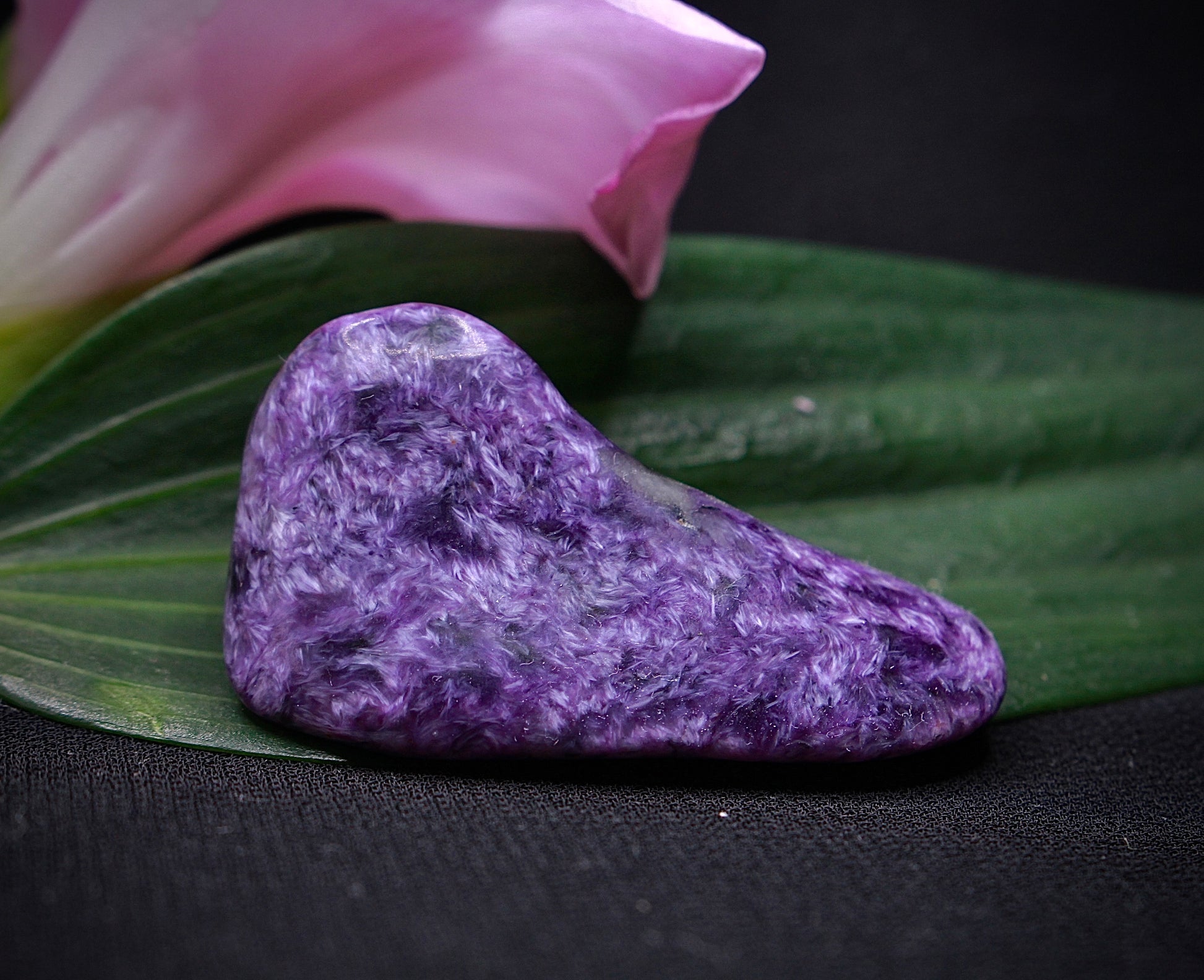 Charoit ist ein extrem seltener Kettensilikat-Stein, der nur in Sibirien entsteht. Durch die chemische Wechselwirkung von alkalischem Magma und Kalkstein/Dolomit. Seine violette Schönheit ist einzigartig und geologisch ein echtes Naturwunder.