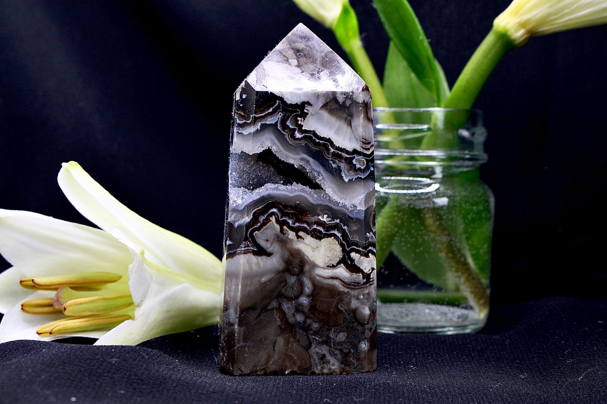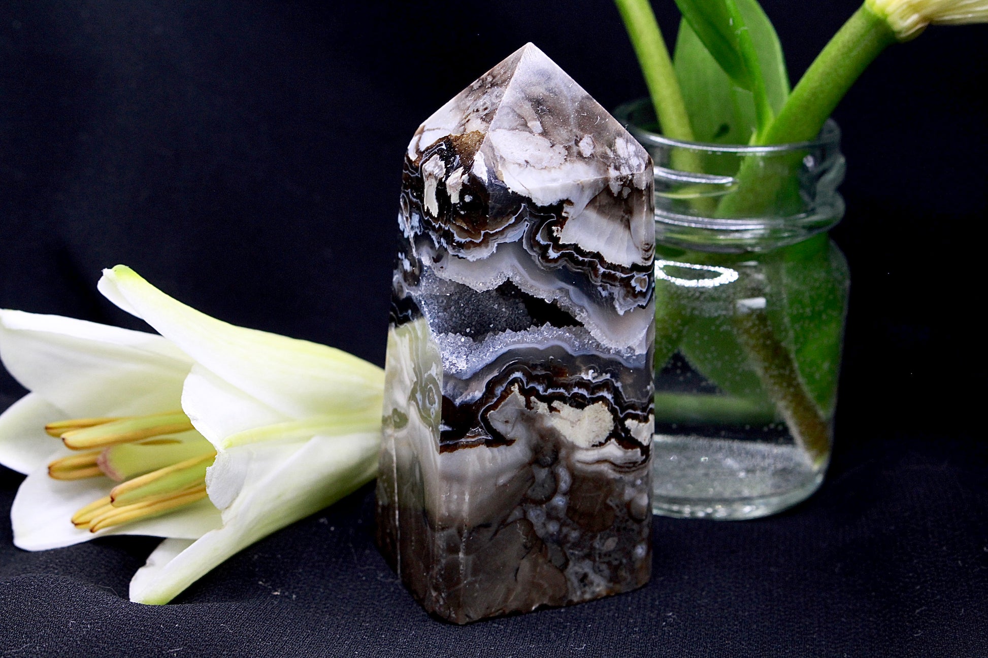 Crazy Lace Achat ist eine besondere Form von Achat, die vor allem in Mexiko gefunden wird. Er entsteht in Hohlräumen vulkanischer Gesteine, wenn sich Schicht für Schicht Quarz ablagert. Dabei bilden sich die typischen, verschlungenen Bänderungen in Weiß, Grau, Rot, Gelb oder Braun. Seinen Namen trägt er wegen dieser wilden, spitzenartigen Muster: „Lace“ steht für Spitze und „Crazy“ für das verrückt wirkende, verschnörkelte Aussehen.