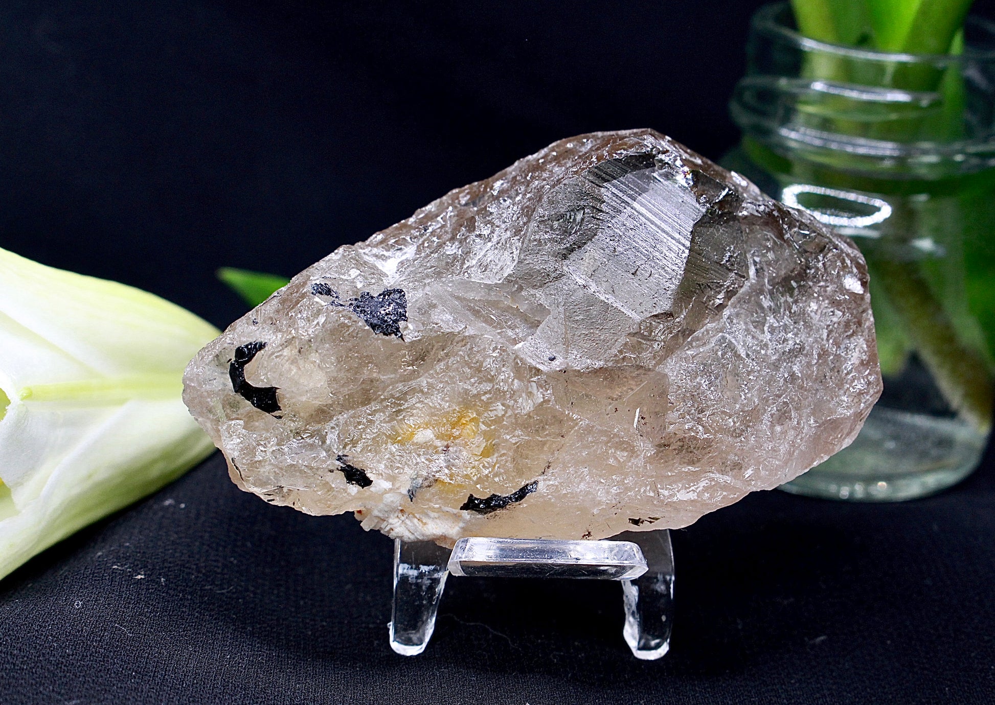 Elestialquarz ist eine besondere Wachstumsform von Quarz. Man erkennt es ban seinen vielen kleinen Spitzen, kaskadenartigen Strukturen und einem fast „skelettartigen“ Aussehen. Er bildet sich in den letzten Phasen der Kristallbildung, meist in Hohlräumen von Pegmatiten oder hydrothermalen Gängen. Wenn sich die Wachstumsbedingungen wie Temperatur, Druck oder die Zusammensetzung der Mineral-Lösung verändern, wächst der Kristall nicht mehr gleichmäßig weiter. Stattdessen entstehen die typischen, verschachtelten Flächen und vielen kleinen Spitzen, die dem Elestialquarz sein charakteristisches, fast „skelettartiges“ Aussehen verleihen.
