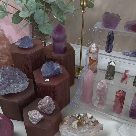 Fluorit auch Flussspat genannt, gehört zu den Halegoniden. Die Farbe des Fluorits kann stark variieren von farblos über gelbgrün, türkis bis violett. Viele Fluorite weisen eine starke Fluoreszenz im UV-Licht auf