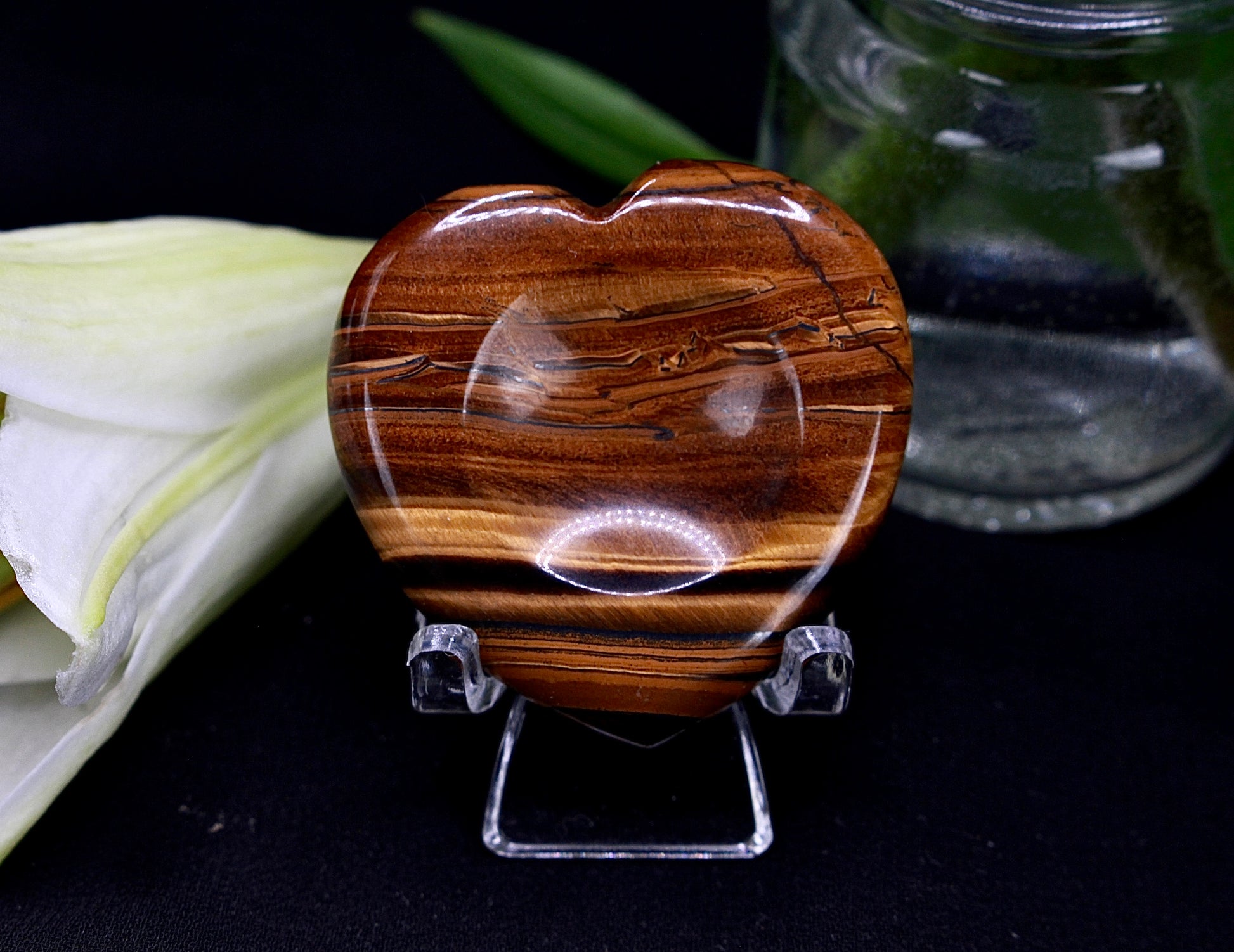 Tigerauge entsteht, wenn ursprünglich vorhandene Asbestfasern im Gestein nach und nach durch Quarz ersetzt werden. Die feine faserige Struktur bleibt dabei erhalten und sorgt für den typischen schimmernden „Augeneffekt“. Durch Eisenoxid färbt sich der Stein goldbraun bis honiggelb.