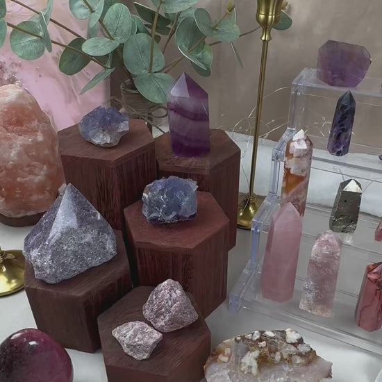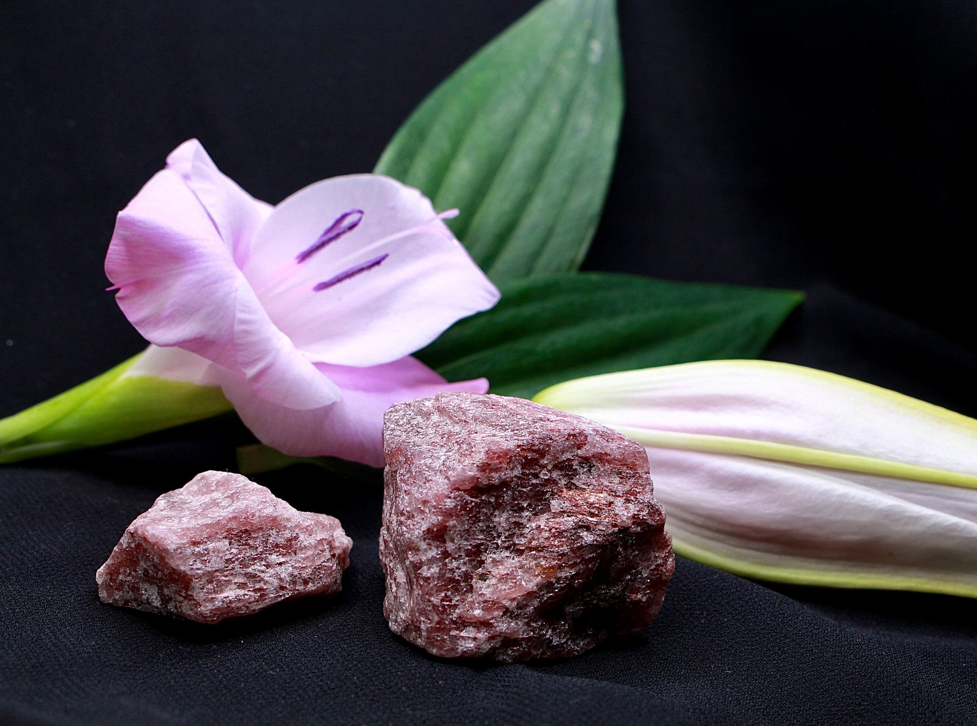 Lepidolith ist eine blättrige Glimmer-Varietät, die zur Polylithionit–Trilithionit-Reihe gehört. Die rosanen bis violetten Farbtöne entstehen durch geringe Mengen an Mangan, nicht durch Lithium selbst.