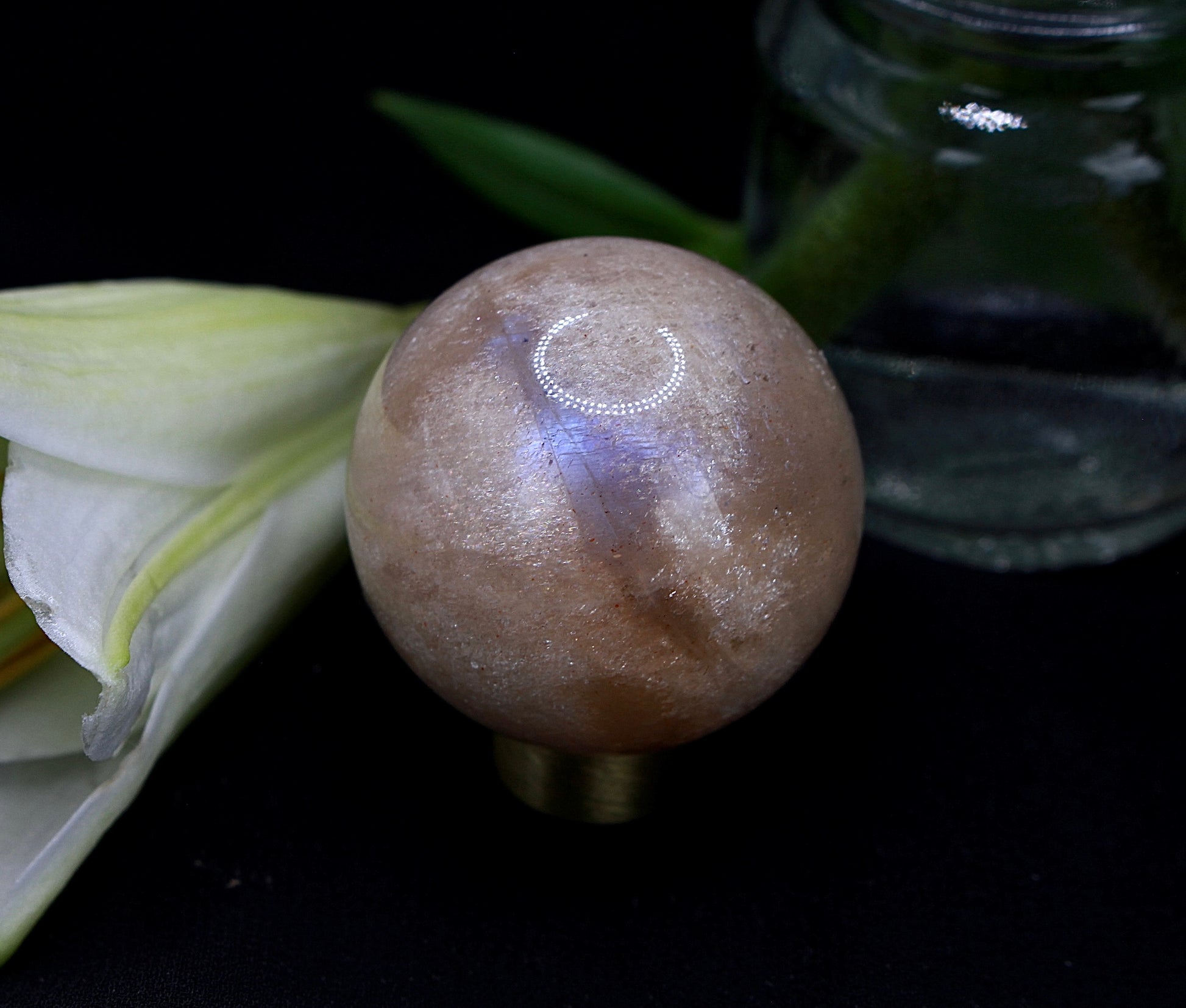Mondstein gehört zur Gruppe des Feldspat genauer gesagt zu Orthoklas und Albit. Den seidig-blauen oder weißliche Schimmer, der über die Oberfläche “gleitet”, wenn man ihn bewegt, nennt man Adulareszenz. Dieser Effekt entsteht durch Lichtbrechung in feinen Schichten innerhalb des Kristalls.