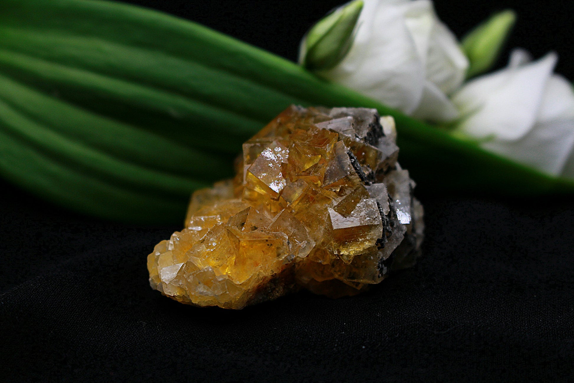 Fluorit auch Flussspat genannt, gehört zu den Halegoniden. Die Farbe des Fluorits kann stark variieren von farblos über gelbgrün, türkis bis violett. Viele Fluorite weisen eine starke Fluoreszenz im UV-Licht auf