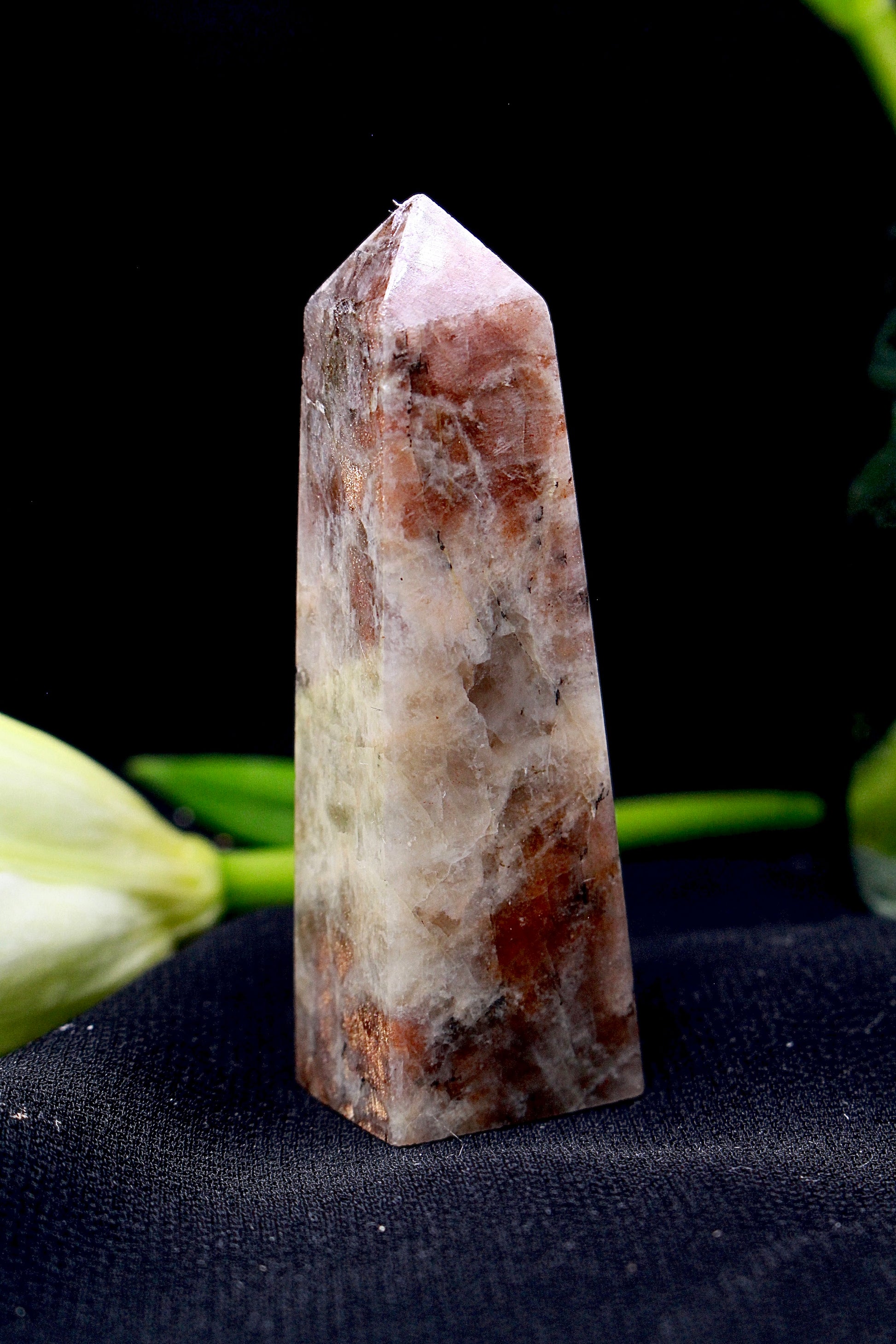Sonnenstein ist ein Feldspat-Mineral, das sich in magmatischen Gesteinen beim Abkühlen silikatreicher Schmelzen bildet. Während der Kristallisation lagern sich winzige Plättchen von Kupfer, Hämatit oder anderen Mineralen im Kristall ein. Diese Einschlüsse reflektieren das Licht und erzeugen die charakteristische Aventureszenz. Ein schimmerndes, glitzerndes Funkeln, das dem Sonnenstein seinen Namen gibt.