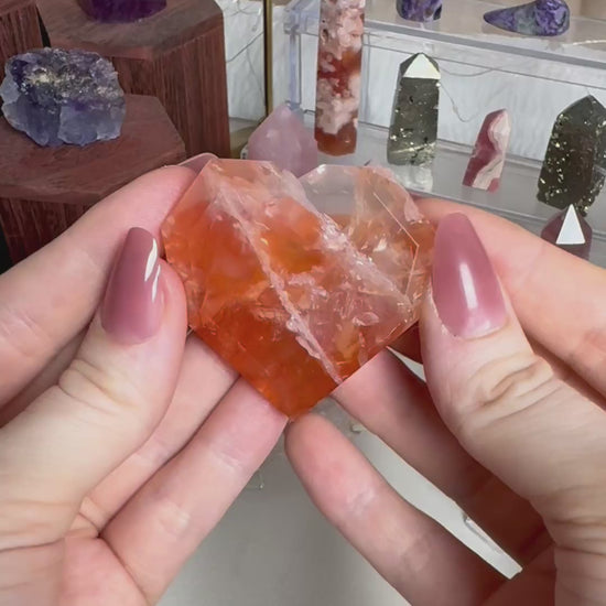Feuerquarz, auch Hämatoidquarz genannt, ist eine Varietät von Quarz, die durch Einschlüsse von Hämatit ihre charakteristische rot-orange bis braune Färbung erhält