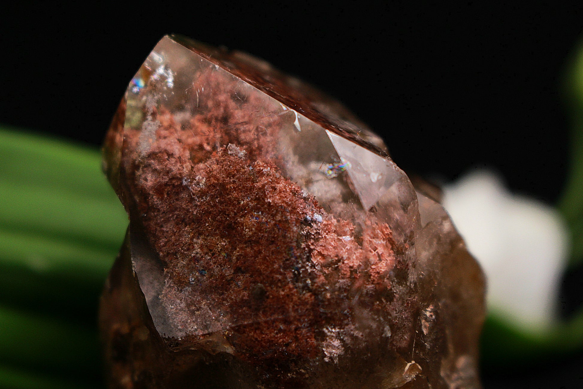Beim Gartenquarz werden während des Wachstums fremde Mineralpartikel eingeschlossen, z. B. Chlorit (grünlich), Hämatit (rötlich-braun), Limonit, Pyrit, Feldspat oder andere feinkörnige Minerale. Später wachsen weitere Quarzschichten darüber, wodurch die Einschlüsse wie „eingekapselt“ wirken.